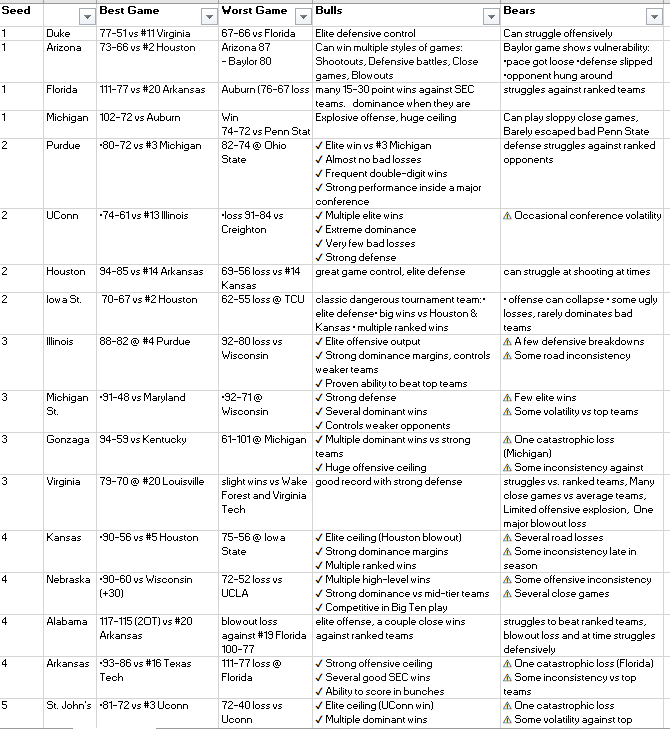 Arizona’s record is impressive. They can win any type of game: shootouts, defensive battles, close games, blowouts. Most teams need the game to look a certain way. Arizona doesn’t — and that matters in a tournament where every matchup is different.